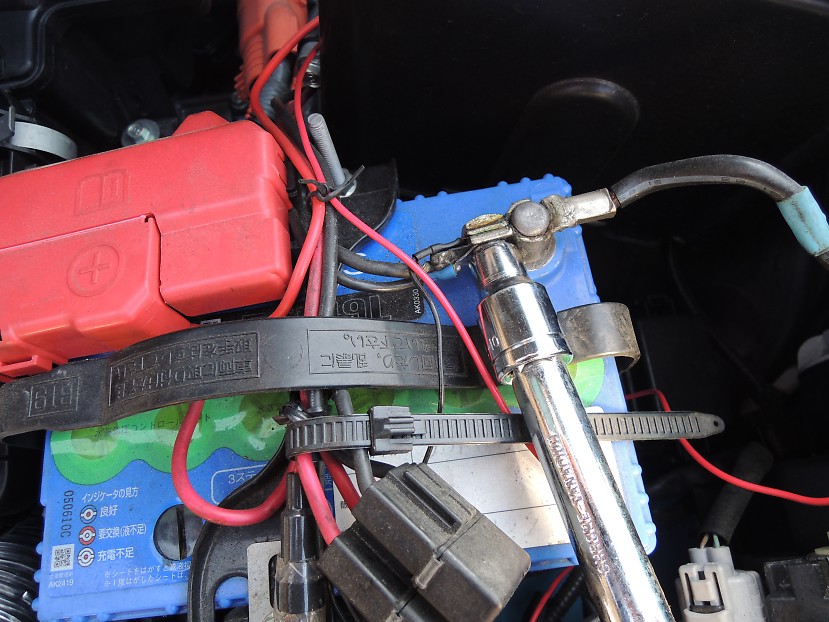 まず、マイナス端子を外します。これ 常識 ね (^_^)