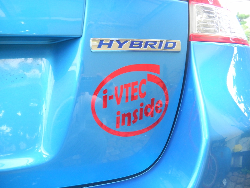 愛車『ホンダ・インサイト』(通称「ブルーインパルス」)に『i-VTEC-inside』のステッカーを貼りました。