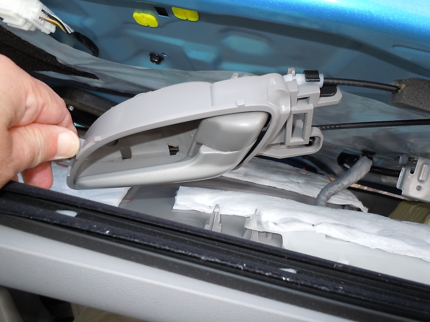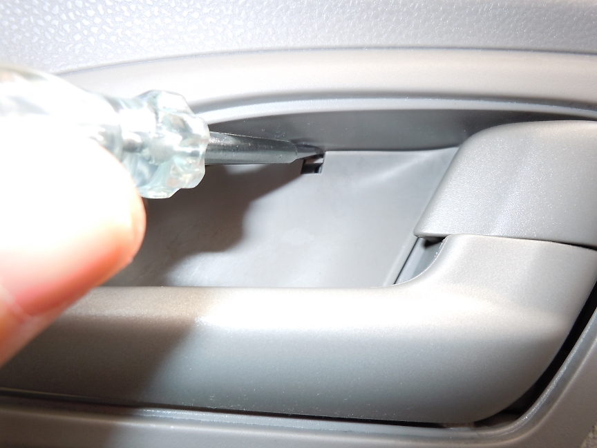 次にドアの肘掛けに付いているカバーを外します。