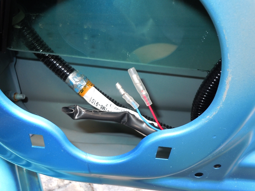 元のスピーカに入っている線を切って、そこにギボシ端子を付けます。