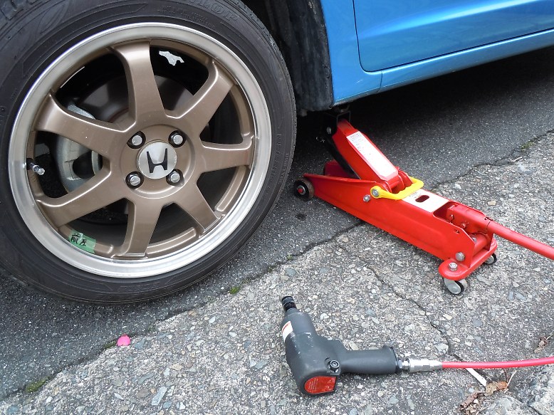 ジャッキは一応 2トン のものですが、ちょっと不安なので、一輪ずつにしました。
