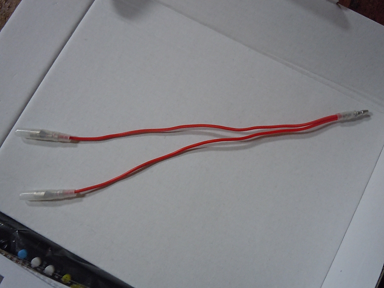キーの「アクセサリ」から電源を取るため、二股のギボシを作りました。